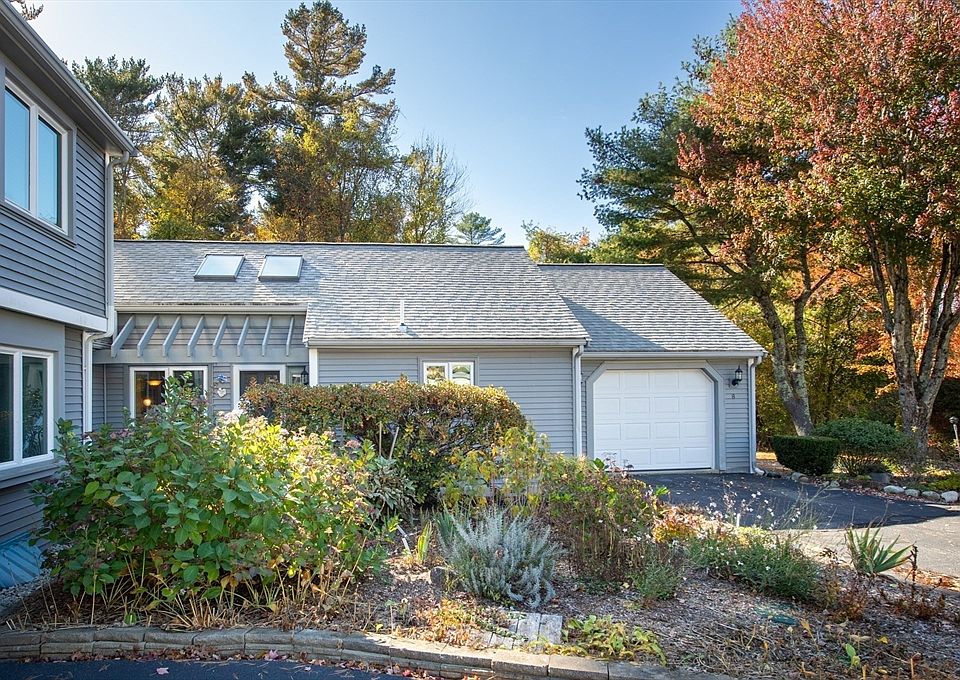 663 Wareham Street, Unit 8, Middleboro offers a rare opportunity to own a private end-unit condo with exceptional features, quality craftsmanship, and a prime location. Upon entering you're greeted with soaring cathedral beamed ceilings in the living room and a sun-filled, spacious eat-in kitchen with stainless steel appliances, maple cabinetry, and quartz countertops. The main level offers two bedrooms, including a primary suite with walk-in closet and full bath, plus first-floor laundry. The finished lower level includes two versatile rooms and a workshop area. Recent updates include a new furnace and A/C (2021), Harvey windows, hardwood floors, new refrigerator, new garage door and Lo-flow toilets (2022–2023), new Velux skylights and dishwasher (2024), and new kitchen faucet and hard-wired smoke alarms (2025). Enjoy your private back deck, 1-car garage, and a location minutes to Route 28, I-495, Wareham Crossing, and the Commuter Rail. Don't miss this gem with so many updates!