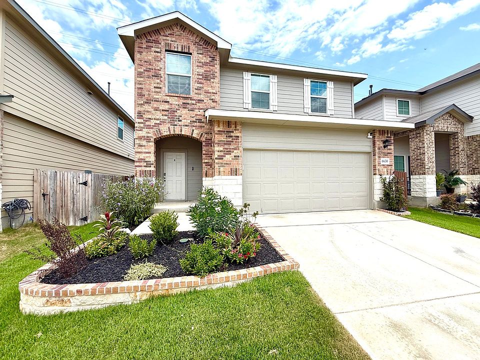 Welcome to 6630 Apfel, a two-story home located in San Antonio just minutes from Lackland AFB. This property offers four bedrooms and two and a half bathrooms, with a layout designed for everyday function and easy living. The open kitchen features stainless steel appliances, including a refrigerator, stove/oven, built-in microwave, and dishwasher. An island adds additional prep space and serves as a central gathering point. Central air and heat help keep the interior comfortable, and a water softener system is already in place. The primary suite includes a walk-in closet and a spacious bathroom, while washer and dryer connections offer added convenience. Step outside to a fenced backyard with a covered back porch, and a flower bed that adds a touch of charm. The covered front porch provides another place to relax outdoors. A two-car garage allows for secure parking and extra storage. The home is part of a community that offers access to a park and pool, with nearby shopping and dining options just a short drive away. Don't miss the opportunity to make this beautiful home your new rental! Thank you!