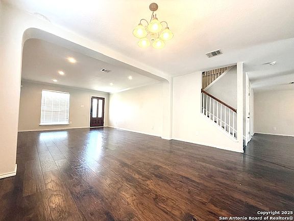 Welcome to this beautiful 4-bedroom with 2.5 baths offering a perfect blend of comfort, style, and functionality. Located in a cul-de-sac. Featuring spacious living areas, an open concept, and a large private backyard ideal for entertaining and family gatherings. No carpet, wood flooring, tile floor, window blinds, ceiling fans in every room, intercom, washer/dryer, refrigerator, water softener, and garage door opener. three-sided stone, a nice front porch, and a covered back patio. Conveniently located near schools, shopping, grocery stores, and restaurants. Easy drive to Randolph AFB, Fort Sam Houston, and downtown San Antonio. Easy access to the I-10 freeway, FM 78, and the I-35 freeway. MOVE-IN ready