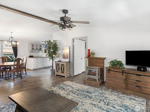 Enjoy Premier Senior Living in this elegantly appointed home with new vinyl flooring throughout, updated lighting, six-panel doors & trim, renovated bathrooms featuring walk-in showers. Kitchen features custom-painted cabinets, Corian countertops, tile backsplash, new stainless appliances & charming breakfast nook w/matching table. Primary bedroom has a custom wood headboard & bath with stylish barn doors. Corner lot, beautiful landscaping, enclosed porch along w/spacious sitting area suitable for entertaining. Ductless heat pump, ramp access, 3 sheds for ample storage & workshop. Silverdale Estates is a 55+ community with a clubhouse, indoor swimming pool, hot tub, sauna & more. Close to shopping, restaurants & medical facilities.