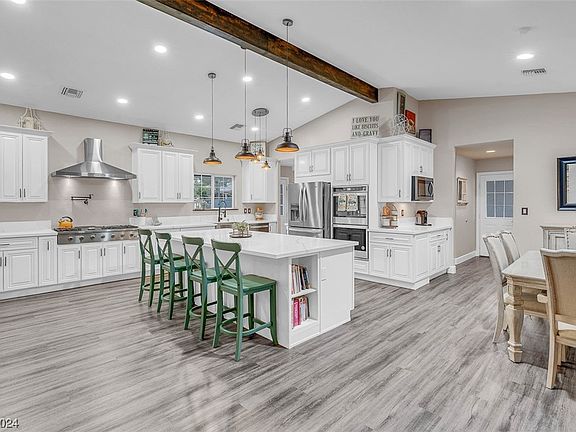 - Description: Breakfast Bar/Counter,Custom Cabinets,Island,Lighting Recessed,Luxury Vinyl Plank,Quartz Countertops,Stainless Steel Appliances,Vaulted Ceiling,Walk-in Pantry