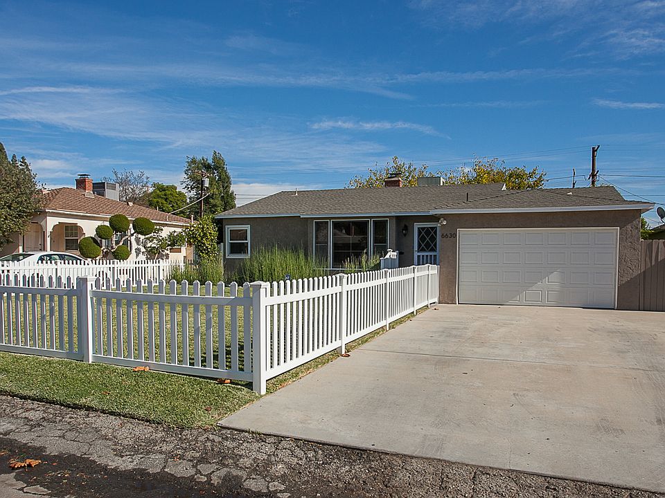 Beyond the white picket fence sits this charming traditional. Features a Galley kitchen with Oak styled cabinets with white ceramic tiled counters and detailed ceramic tiled back splash, convenient breakfast bar looks into quaint Cathedral beamed family room with opens to private grassy yard with cement patio area, formal dining area flows to bright living room with its brick fireplace, hardwood floors and smooth ceilings, mostly dual glazed vinyl windows, remodeled guest bath with updated tiled stall shower and stylish vanity, master suite has an updated bath with custom tiled walk-in shower, updated Granite vanity, other features include central air conditioning and heating, crown molding, ceiling fans, 2 car direct access garage with auto opener and laundry area plus much more. Close proximity to schools, transportation shopping and 405 freeway.
