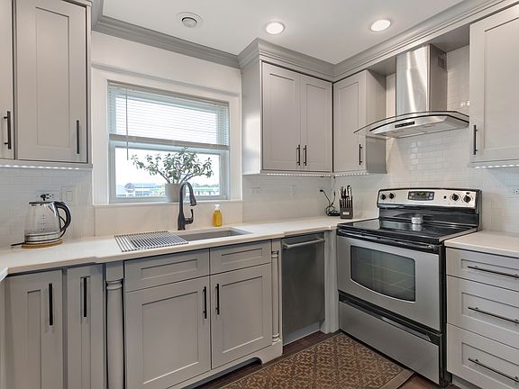 Multiple Offers Received. Highest & Best Due by Monday 8/7 at 5pm. Welcome to this delightful 2 bedroom, 1 bath condo. Enjoy a great size kitchen with stainless steel appliances, newer cabinets, and quartz countertops. This super clean and bright unit features an updated bathroom with updated vanity, beautiful, laminated floors throughout, recessed ceiling lights, full size washer and dryer in the unit, 1 assigned parking space plus guest parking. Great location! Close to 294 expressway, Metra station, bus transportation, Mall, shopping, Centennial Park Pool and Splash Pad. Investor friendly. Come see it today!