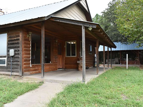 Country living! This home is nestled away on over 7 acres, close to Canton lake. The log cabin feel with a great view, features 2 bedrooms and 2 baths, large windows to let in the natural lighting and open up the view. The interior walls of cinder block hidden behind the rustic cabin feel keep this home low efficient and cozy. Step outside and enjoy the peace and quiet on the covered porch or under the covered gazebo. There are 3 RV hookups with water and electric for extra family or friends or income. Make it yours! Call today.