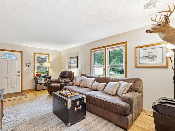 Features abound in this charming Farmette. Mechanics at heart will love the over-sized one-and-one-half story garage complete with 150amp service, heat and a hydraulic lift. The oversized two-car heated garage has a large dog door that opens to a kennel area. The 44x36 concrete pole barn slab has 100amp service and a dedicated driveway with freshly laid class 5. For the outdoor enthusiast; there is a large, sunny, fenced garden and a small fruit orchard. The chicken coop can house dozens of egg laying hens and has a nice sized yard. The home sits on 2.58 acres and boasts one sunrise AND one sunset deck. The sun drenched house has 200amp service, new carpet, tile, paint and appliances. The home is in a wonderful location. Several parks are nearby and one with playgrounds, an ice rink and ball fields less than a block away! A three-minute drive will find you at the public boat launch for Martin Lake. All within a 30-minute drive of downtown St Paul! Schedule your private showing today!
