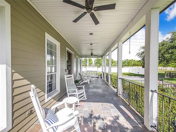 This extraordinary 32+ acre (that can be divided and sold as an investment) estate offers two unique single-family homes, three barns (including an RV/Boat barn/Possible Venue), stables, a private pond, and a sparkling pool—all in one of the area’s most desirable locations. (Since the photos were taken a brand new roof has been added on 9/25!) Purposefully planted mature eucalyptus trees line the north side of the property, creating privacy and a serene retreat. A gated entrance welcomes you down a tree-lined drive past a pond stocked with bass, blue gill, and catfish—complete with a fountain for a picturesque touch. Main Residence: A traditional two-story home with a front porch and bed-swing makes a magazine-worthy first impression. Inside, the open-concept design boasts grand trey ceilings, hardwood floors, and custom built-in cabinetry. The gourmet kitchen is equipped for serious cooks: a Wi-Fi-compatible 5-burner gas stove with double ovens, granite island seating for four, ceiling-high pantry shelving, and built-in desk area. The first-floor master suite features a private porch, spa-style bath with garden tub, multi-head shower, and direct pool access. A second ensuite is located on the main level, while two generously sized bedrooms upstairs share a Jack-and-Jill bath. Additional highlights include a second living area with fireplace, convenient portico for unloading during Florida afternoon showers, and seamless flow to the outdoor pool and entertaining spaces. Entertainment Barn: The climate-controlled barn is a true showstopper—ideal as a man cave or event space. It includes: Spacious bedroom (that may be used as a gym, playroom, etc.) & office with a Full bath, Built-in safe, Stainless steel 8-ft bar with commercial fridge/freezer; Custom bar-height table; 3 roll-up garage doors; Additional storage rooms - one with built-in fishing rod storage system; Covered, brick-paved patios with seating areas flank three sides, one featuring a built-in fire pit. Five stalls for your horses when they aren't out in one of the pastures. There are cattle catches at the main and second home. Boat/RV Barn: A 40x70 barn with two custom 14-ft roll-up doors, plus a 12-ft north entry. Powered and plumbed for water—perfect for RVs, boats, or large equipment. This could also be used as a venue for weddings/parties, etc. There is plenty of parking if this was used as a venue. Outdoor Living: The pool area is surrounded by a wrought iron fence, tiki-style outdoor kitchen with commercial fridge, dishwasher, sink, ice bucket, Weber grill, and griddle. A half bath and outdoor shower add convenience. Second Home (Parcel 2): A traditional solid 2-bedroom, 2.5-bath home with a 1-car garage, its own barn, and private road entrance—ideal for in-laws, guests, or rental income. Open concept living room and kitchen with a wet bar and French doors to the backyard. A separate dining room and two bedrooms round out the quaint home with tons of personality and possibilities. Privacy is at a premium here. Beautiful, mature landscaping with shaded backyard. Plenty of room for a vegetable or flower garden or chickens. Plus, the backyard with a huge oak tree is perfect for climbing and the yard is big enough for a friendly game of football or baseball.