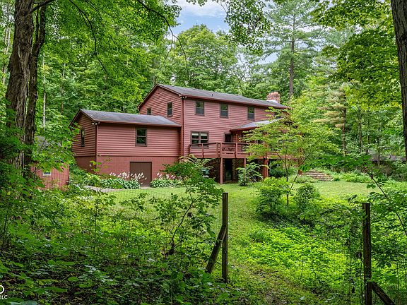 Nature lovers, this home is for you. Nestled on over two wooded acres near Geist Reservoir, Ft. Benjamin Harrison State Park, close proximity to the new Greenway trail, and with quick access to I-465, this meticulously cared for, hidden gem offers the perfect balance of privacy and convenience. Tucked away from the road and surrounded by mature trees, the property features a stream that winds through the middle, a fenced rear-perimeter ideal for pets, a roundabout asphalt driveway, and a freshly painted shed. Inside, the three-story home is filled with character and thoughtful details. Upstairs, you'll find four bedrooms with built-in storage, 2 full baths, and a cedar closet with secondary attic access. The main attic is a spacious walk-through with pull-down stairs for easy access. The main level offers a cozy stone fireplace (made from stone from the property) for snowy Indiana evenings, a sunroom with tray ceilings and updated thermal windows, a formal dining room, a half bath, living room, and family room with built-in storage benches. Step out to the elevated deck for views of your private wooded retreat. The walkout basement with security doors offers incredible versatility with a second fireplace, a half bath, laundry/utility room with sink, charming laundry chute from upstairs, and a dedicated climate controlled workshop/garage space with French drains and separate entrances - ideal for woodworking, storage, or even a home business. Recent updates provide peace of mind, including updated plumbing, a newer furnace, gas water heater, programmable thermostat, water softener, water filtration system, and tested well water. Trees have been maintained around the property. With two fireplaces, abundant storage, unique architectural details, and a serene wooded setting with paths and a stream, this home offers space, comfort, and flexibility for every lifestyle. This will not last long- you won't want to miss it! Sellers are motivated, bring any offers!