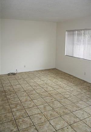 PRIVATE REAR DETACHED UNIT! Feels like a house! Make this 2 bedroom and 1 large bath your own! Tile and laminate wood floors throughout, large closets, roomy eat-in kitchen with stove and refrigerator, back kitchen door leads to a small private patio and a full size 2-car garage with remote. CALL NOW!