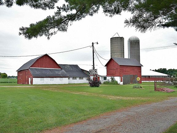 Charming remodeled 3BR, 1BA Farmhouse. New furnace -2020. Partial roof on large barn- 2022.  Interior remodel (windows, flooring, paint, etc.) 2023. Garage insulated/closed-in with heat -2023. Additional roof on large barn 2023. Water heater w/5 year warranty. Roof house - 7/2024. Replaced Septic/Drain Field 7/2024.  Features include main floor primary,  updated bath, open Living, Dining and Kitchen areas plus a large front room/Recreation/Living area. Sliding door off the Dining area to Patio area/pergola space.  Large mudroom w/laundry.  Attached 2-car garage. The 2br’s upstairs with built-ins open to a roomy landing area between with cubbies.   Large block basement could be finished as additional living space. Unique opportunity for small hobby farm w/large barn/outbuilding 180x92 has been used for storage with a history of income - full capacity every year. Add/l outbuilding 26x18.Currently Tenant Occupied until 10/312024 - Great tenant and future rental income! All Meas. Approx.