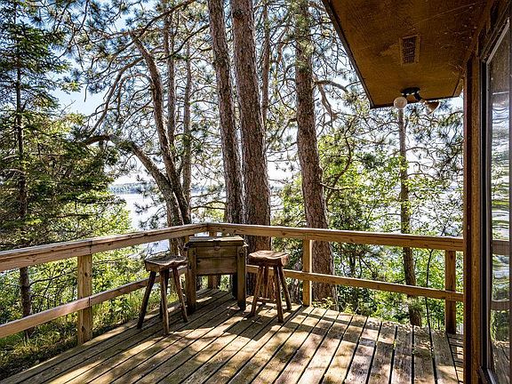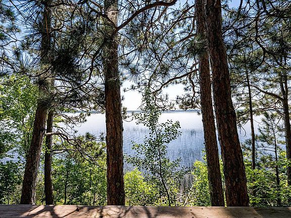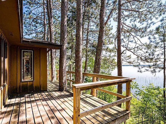 Nestled amongst the towering pines, this quaint cabin will inspire you to leave all worries behind. Welcoming you through the screened porch, you’ll observe a glimpse of the lake from the kitchen and dining area. The three sliding doors in the living room create panoramic views and allow access to the wrap around deck. You’ll love the details in the stained glass windows, natural woodwork, and cozy brick fireplace. Two bedrooms and a full bath complete the main floor, with the lower level being unfinished and ideal for storage. The rock-lined path guides you to 105 feet of shoreline on Deer Lake. A boat house/fish cleaning station is situated on waters edge, inviting you to cast a line or simply relax as the sun glistens off the lake.