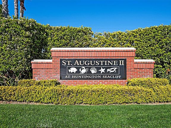 This uniquely designed home is located in the highly coveted GATED COMMUNITY of ST. AUGUSTINE II, just over a mile from the Pacific Ocean. Enter through a private enclosed landscaped courtyard with slate hardscape leading to your front door. The home is light and bright with soaring ceilings, recessed lighting, hardwood floors, & a freshly painted interior. Its exceptional floor plan with a LARGE UPSTAIRS LOFT currently has one bedroom downstairs designated as a home office with built in cabinets and a desk.(The office does not have a closet.) A VERY LARGE SUNROOM is a unique addition to this home and is adjacent to the formal living room and dining room with beautiful hardwood floors, a fireplace and custom shutters. The gourmet kitchen has wood cabinetry, granite counters, a large granite center island with gas cooktop, built in microwave, ceramic tile flooring and an eat in area. The kitchen opens to the family room with a second fireplace, hardwood floors, and sliders that also can be used to access the sun room. A half bath and a separate laundry room (that leads to the attached two car garage) complete the downstairs. Upstairs, the master suite is spacious with hardwood floors, a walk in closet and a luxurious expanded bath area with soaking tub, walk in shower, and dual sink vanity. The spacious upstairs loft outside the master is multi-functional and could serve as a play area, office area, bonus room, game room or can be easily enclosed to create an additional bedroom. Two more generously sized bedrooms adjacent to a full bath with enclosed tub/shower are also located upstairs. The attached two car garage has built in cabinets for more storage. The home, on a corner lot, is conveniently located across from the association's pool/spa and has a neighbor on only one side. St. Augustine II is a gated community near parks and award winning schools. It is just a short walk or quick drive to Seacliff Elementary School. Enjoy the California coastal lifestyle in one of Huntington Beach's most prestigious neighborhoods.