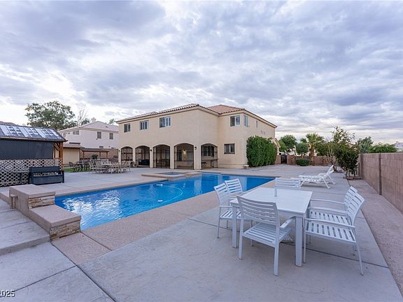 Outside, an expansive backyard unfolds to sweeping mountain views, centered around a heated pool and spa with waterfall—your personal oasis of peace. RV parking adds functional ease.