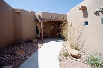 FORMAL PUEBLO LIVING Great room w/FP, gourmet kit w/island & nook, master suite w/FP, study/office, skylight(s), refrig air, radiant heat, water softener, tile & tile flrs, oversized gar, patios, mtn/ valley views, half acre lot. MORE INFO: 800-522-6573 Ext. 41334 $650,000