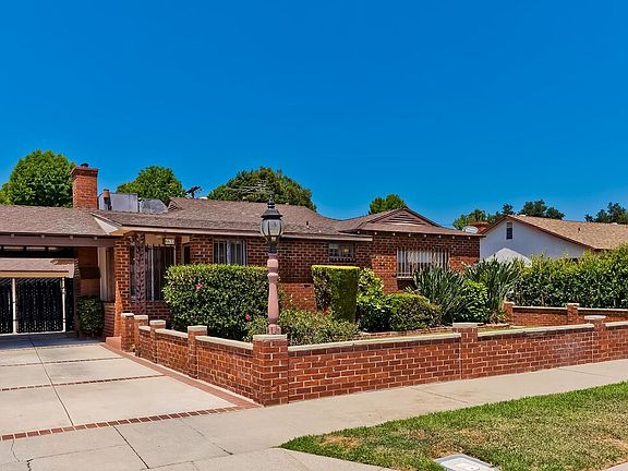This original traditional brick-style home set on a quiet street on the border of Van Nuys and Valley Glen offers an incredible opportunity to reimagine, renovate or even build new. On the market for the first time in over 50 years, the well cared for single-level, 4bd/3ba, 1,827 sq.ft. residence sits on a 7,430 sq. ft. lot. Upon entry, guests are welcomed to the spacious living room and breakfast nook with a beautiful wooden-mantel fireplace. The kitchen features ample built-in cabinetry and counter space with original detailing, leading to a large dining area and den. The well-considered floor plan separates 3 of the bedrooms to one side of the home with an additional 4th bedroom off of the den, making it an ideal office or guest suite. The master features an en-suite bathroom and ample closet space. Exit through sliding glass doors to the large grassy yard with lush fruit trees and covered patio, a converted garage space that can be permitted and transformed into an ADU, and an additional storage/work shed. Don't miss this opportunity to reimagine this beloved home to make it your own.