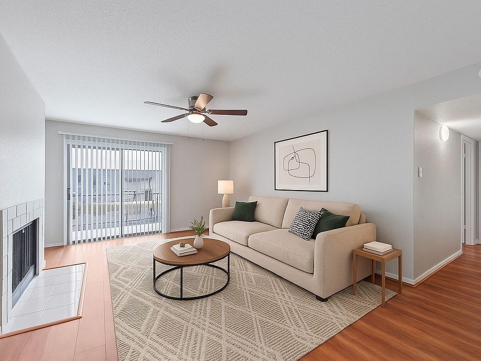 Welcome to this charming 2-bedroom, 2-bathroom condominium, a delightful blend of comfort and convenience. The open floor plan creates an inviting atmosphere, with a generously sized living area featuring a cozy fireplace and elegant built-in shelves that flow seamlessly into the spacious dining area. The well-appointed galley kitchen boasts granite countertops, a brand new electric stove, and a modern faucet, making meal preparation a pleasure. The spacious bedrooms offer a relaxing retreat, while the in-unit utility room comfortably accommodates a full-size washer and dryer. Enjoy additional storage space in the convenient room located off the balcony. This gated community provides added security and peace of mind. Benefit from two assigned parking spots and unwind in the community pool area, complete with comfortable covered seating. This condo offers a wonderful opportunity to embrace a low-maintenance lifestyle.