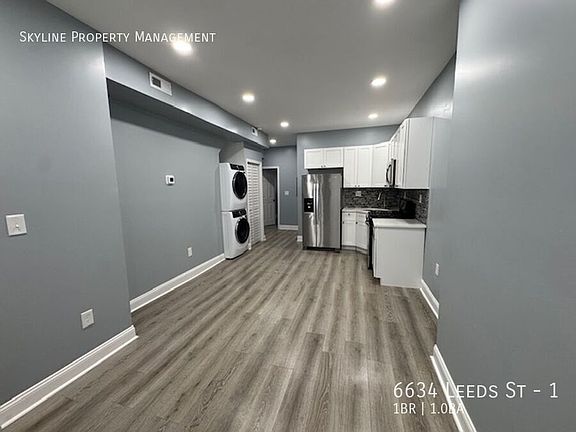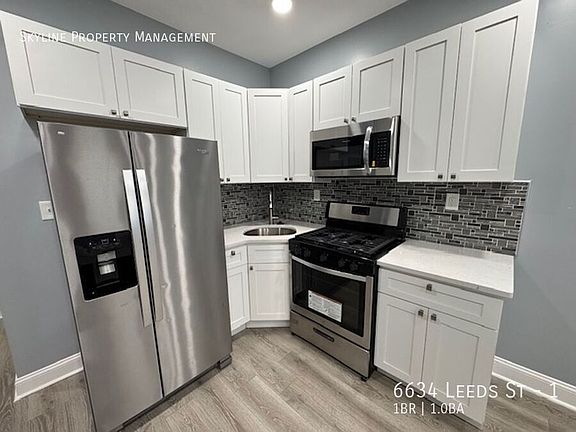 Presenting 6634 Leeds St (Apt 1)! This newly renovated first floor apartment is ready to be rented! Upon entry, you are greeted by a spacious living/dining area. The kitchen is equipped with brand new appliances including a gas range, stainless steel refrigerator, and built-in microwave! The bathroom is adorned with bright tiling as well a double sided vanity. The bedroom is nicely sized, offering ample living space for tenants to utilize. Tenants also have private access to a large backyard, great for enjoying that coveted morning cup of coffee! This gem will not last long, schedule your tour today!