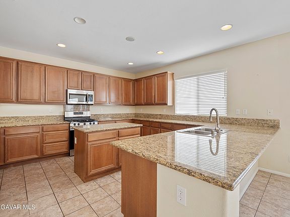 This West Lancaster two-story home offers a rare combination of space, layout, and functionality, featuring five bedrooms and three full bathrooms designed to accommodate a variety of living needs. The main level includes an open-concept kitchen and family room, creating a natural flow for everyday living and entertaining. The kitchen is thoughtfully designed with dual islands, granite countertops, stainless steel appliances, and recessed lighting, while the adjacent family room is anchored by a cozy fireplace. A downstairs bedroom and full bathroom provide flexibility for guests, extended family, or a home office. Upstairs, four additional bedrooms offer comfortable proportions, including a spacious primary suite with a walk-in closet, dual vanities, and soaking tub. Recent improvements include interior paint and upstairs carpet replacement approximately two years ago. The backyard features a combination of concrete and grass, offering usable outdoor space. Additional highlights include a three-car garage, plantation shutters in select rooms, and recessed lighting throughout. Conveniently located within walking distance to Quartz Hill High School.