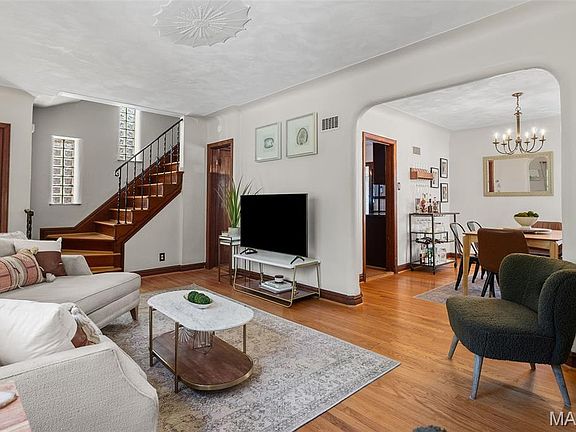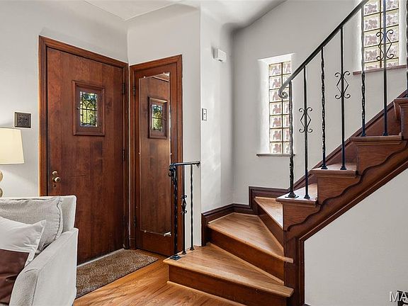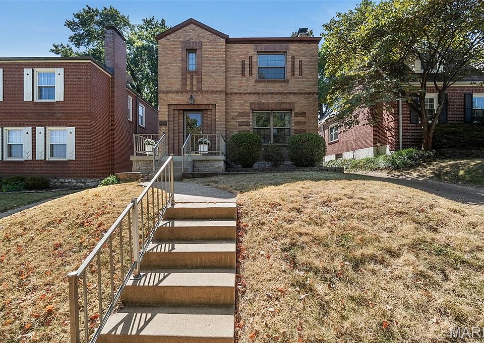 Open House Saturday, September 20th, 11-1 pm! Absolutely darling all-brick 2-story in the heart of Lindenwood Park! This home shines with character and thoughtful updates throughout. Step inside to the spacious living room featuring an open spindled staircase, limestone wood-burning fireplace flanked by custom display shelves, and elegant coffered ceilings. Gleaming hardwood floors flow seamlessly through the home, including the dining room with charming corner window—perfect for hosting. The updated kitchen impresses with 42" custom cabinetry, granite countertops, original black-and-white tile backsplash, and stainless steel appliances. A cheerful sunporch adds flexibility as a mudroom, plant nook, or morning coffee spot. Upstairs, you’ll find a generous primary suite large enough for a king bed, plus a second bedroom with access to a fantastic sunporch that could serve as a dreamy walk-in closet or office. The refreshed full bath features a new vanity, lighting, and fixtures. The professionally finished lower level offers bonus living space for game day, a half bath, laundry, and storage. Step outside to enjoy the large deck overlooking the fenced yard, one-car garage, and off-street parking. All this in a vibrant neighborhood with beloved local coffee shops, independent restaurants, and easy access to Lindenwood and Francis Park. Welcome home!