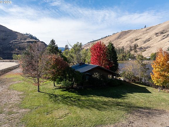 The chance is here to own a very high quality ranch previously owned by the famous rockstar, John Fogerty. The 1,698 square foot 3 bed, 2 bath home was purchased from the rockstar and preserved in its original condition since. Stepping into this home is like stepping back in time. The tastefully designed home comes with multiple personal items that once belonged to Mr. Fogerty. The open concept home is complimented by beautiful exposed beams and beautiful woodwork. As you admire the stone chimney you will find a set of hidden stairs that lead to a secret loft overlooking the kitchen, dining room, and living room. The home has seen many recent upgrades to the appliances and heating/cooling system as well. Open the windows or sit on the patio and hear the river running by.The 273.8+- acre property is complimented with a 1,500+- foot airstrip, 30.7 acres of water rights, 1.5+- miles of Grande Ronde River frontage, and is only a short walk to the Wenaha Bar and Grill in Troy. There is an income opportunity with using the home as a short-term rental. The property is located in the Sled Springs Hunting Unit and qualifies for landowner preference (LOP) hunting tags. The Grande Ronde River is considered to be among some of the best rivers for fishing in the PNW.