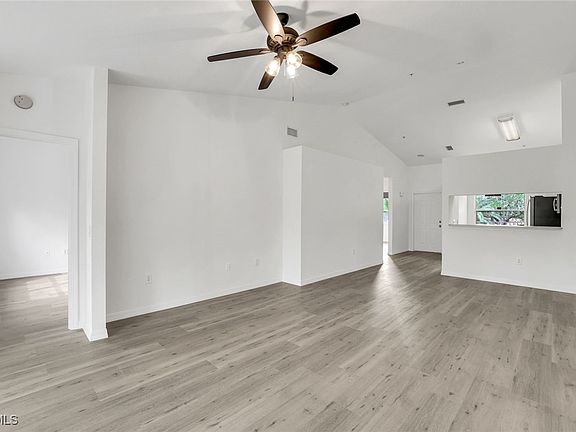 Naples living at a price you’ll love! This beautifully updated 2-bedroom, 2-bath second-floor condo offers a serene private treed view and the added elegance of a cathedral ceiling, available only on upper-level residences. Inside, you’ll find new flooring, fresh paint, and stylish ceiling fans, while the kitchen shines with stainless steel appliances and a convenient pass-thru to the dining area for effortless entertaining.