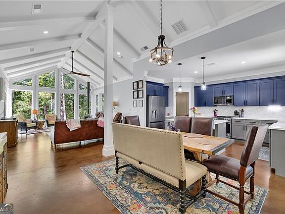 New Construction just completed with lake views! This home features vaulted ceilings and oversized windows for lots of natural light and fantastic views of Six Mile Creek. You will love the garages with 4 parking spots and flex space for tools or additional storage. Efficiently built with 2x6 framing and spray foam insulation. Metal roof for decades of service. Cozy wood-burning fireplace. Don't miss your chance on this one!