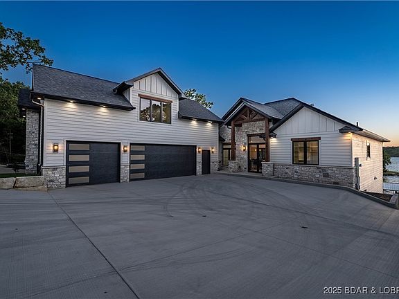 Welcome to lakefront living that truly has it all. This 6 bedroom, 6 bath home was thoughtfully designed for both style and function, with every bedroom featuring its own bathroom. The interior is filled with luxury finishes throughout - hardwood floors, custom cabinetry, and tile showers that bring a high-end feel to the space. A massive bonus room over the 3-car garage makes the perfect bunk room, giving you plenty of space to comfortably sleep family, friends, or rental guests. The floor plan is as practical as it is beautiful, featuring a flat driveway with plenty of parking and flat backyard. There’s just one step into the house and one step to the lake - that’s a RARE find! Outside, enjoy cove protection with expansive lake views and your own private dock, and room to install a pool. West facing house means you get to watch the sunset every night. Whether it’s family gatherings, summer entertaining, or a weekend escape, this property makes it easy to enjoy the best of lake life. With nightly rentals allowed, this home doubles as an investment opportunity. This home checks every box for those seeking both luxury and lifestyle at Lake of the Ozarks!