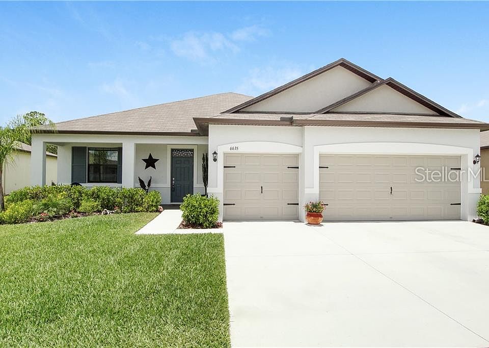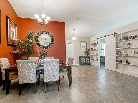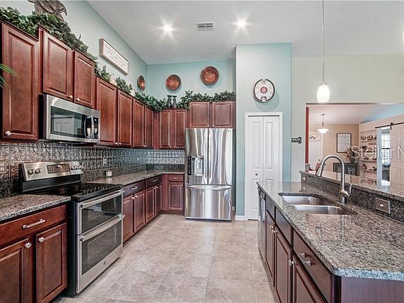 Picture Perfect and move-in ready! Why build when you can move into a totally perfect and upgraded home with all the bells and whistles in the Newly Built community of Silverado Ranch in the heart of Wesley chapel. The "Lancaster" is a very desirable one-story floor plan, offering 4 bedrooms + Den, 3 full bath and 3-car garage. Spacious great room and large casual dining room makes this home perfect for everyday living and for entertaining. Large open concept, this home is bright, light, open and picture perfect in many ways. The gorgeous gourmet kitchen is open to the spacious family room and to the good morning room, overlooking the screened lanai & picturesque home site with pond. All new upgraded Stainless-steel appliances, including upgraded double oven, refrigerator, washer, dryer, stove & double oven, (you will not find your typical appliances offered by the builder here). Granite counter-tops, breakfast bar, upgraded lighting and fans throughout. Spacious master suite and spa-like master bath with granite counter-tops, luxurious bath & walk-in shower. Enjoy the private Den/office, custom bookcase wall and barn door. Custom paint throughout the entire house, this home is move-in-ready and awaiting you and your loved ones. 15 Seer HVAC this home is energy efficient. Custom shelving and safe racks in the garage, and custom garage floor finish. All mirrors are custom framed in all baths. Silverado offers a beautiful open-air clubhouse that opens to a large resort-style pool. Welcome home!