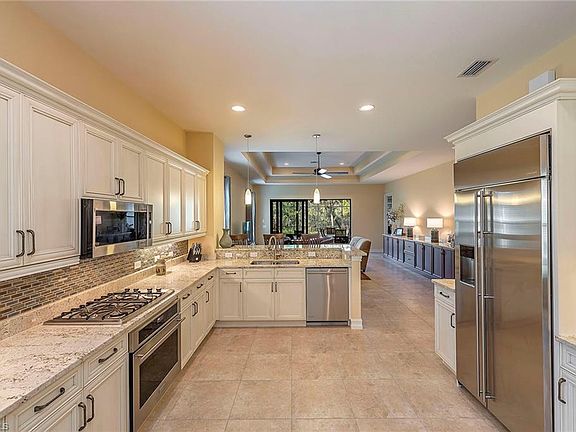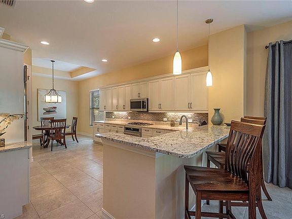 Welcome to coastal luxury & your own private tropical oasis in Lakoya in Lely Resort! This gorgeous, 3BD+Den, villa-style home features neutral decor, tile floors throughout main living areas, volume & tray ceilings, built-in cabinetry, plus impact glass for peace of mind. The Great Room floor plan provides a light, bright atmosphere & western exposure ensures plenty of natural light streaming in. The large eat-in kitchen boasts light cabinetry, pantry, rich granite countertops, textured tile backsplash, top-of-the-line Monogram stainless steel appliances, plus highly-desired gas cooking & convection oven. Unwind in the inviting master suite, with 2 walk-in closets & lanai access, plus en-suite with dual sinks, frameless, walk-in shower, separate soaking tub and private WC. Split bedroom plan provides privacy for you & your guests, with 2 additional bedrooms & a full bath. Float the day away in your private pool overlooking lush landscaping and dine alfresco on the extended, brick paver lanai. A separate laundry room with sink and a 2-car garage complete this lovely home. Lely Resort amenities include the Players Club and optional golf membership.