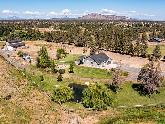 Desirable, private, fully fenced 4.92 acre mini-farm with a beautiful single level home and 40' x 48' shop. Home is recently upgraded throughout with new laminate flooring, fresh interior/exterior paint, new carpet in master, updated vinyl in bathrooms, and more. Property features large pond, Wi-Fi controlled irrigation pump, in-ground sprinklers on wi-fi controlled system, buried propane tank, loafing-shed, and automated watering raised garden bed. This turn-key property includes a hot tub with deck lighting, automated entry gate, renovated patio, and beautiful landscaping. Shop has concrete floor with 14' RV door and 10' vehicle door. Perfect for country living, optimized for modern rural lifestyle, ideally located between Bend and Redmond. Uniquely situated, this property provides privacy not found on much larger acreage.