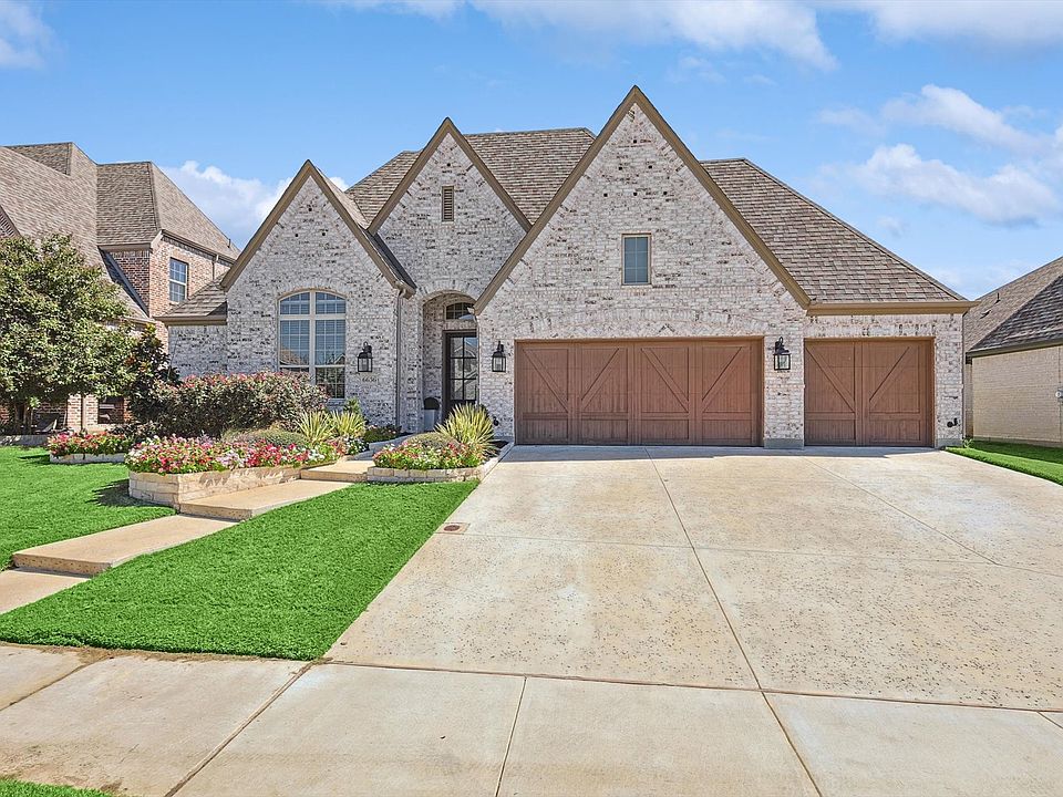 Stunning Highland Homes property in the highly sought-after Canyon Falls community, within Argyle ISD and just minutes from Liberty Christian School. As you enter, a large foyer welcomes you, featuring a glass door that invites extra natural light. Upon entryway, find two secondary bedrooms with a jack and jill bathroom setup. Mid-house find a third bedroom and full bathroom. The open floor plan flows into the home office with French doors and formal dining room with elegant wall panelling. Enjoy a cozy family room with a floor-to-ceiling stone fireplace and mantel. The kitchen has abundant storage and extended counter space, gas stove and big granite island for entertainment. The upgraded 3 car garage features epoxy flooring and custom storage, plus attic space improvements for extra convenience. The beautifully elevated and enlarged flower beds add fantastic curb appeal, while the expansive lot offers room for a future pool or personal retreat. A true gem in Canyon Falls!