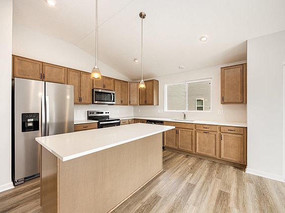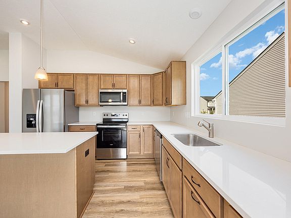 Walkout basementCorner bar areaStainless steel appliancesSpacious kitchen islandBreakfast areaVaulted ceilingsLovely wood cabinets