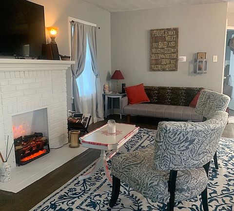 Located on a quiet, peaceful, centrally located street in Kansas City, this furnished home offers beautiful hardwood floors and a comfortable living experience. Perfect for dog walks and beautiful morning walks. The living room is cozy and relaxing with a beautiful fireplace to enjoy.