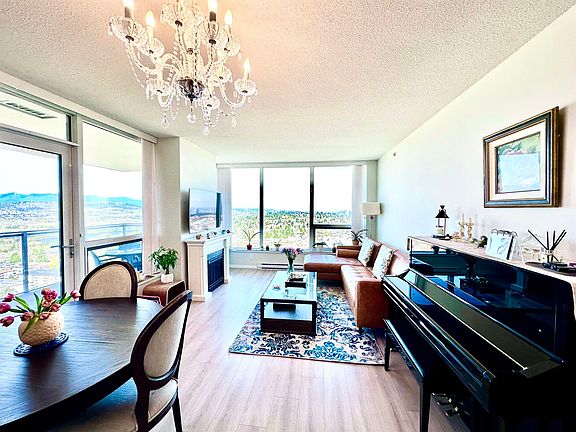 MIDORI by POLYGON! Rarely available northeast corner unit, over 935 sqft, 2Bed + 2Bath. This bright and spacious home features over-height ceilings, quartz countertops, build-in appliances, gas range and custom-made cabinets. Master bedroom includes walk-in closet, double vanity & a spa-inspired shower. Enjoy stunning sunrises from your square-shaped balcony (120+ sqft) with panoramic views of the city, Deer Lake, Mt. Baker, Fraser river and mountains. Amenities include gym, lounge, pet grooming station & car wash area. Prime location just steps to Metrotown, Bonsor Community Center, banks, restaurants and Skytrain. Photos with furniture were taken before the owner moved out. ONE parking stall and TWO lockers included as a bonus!