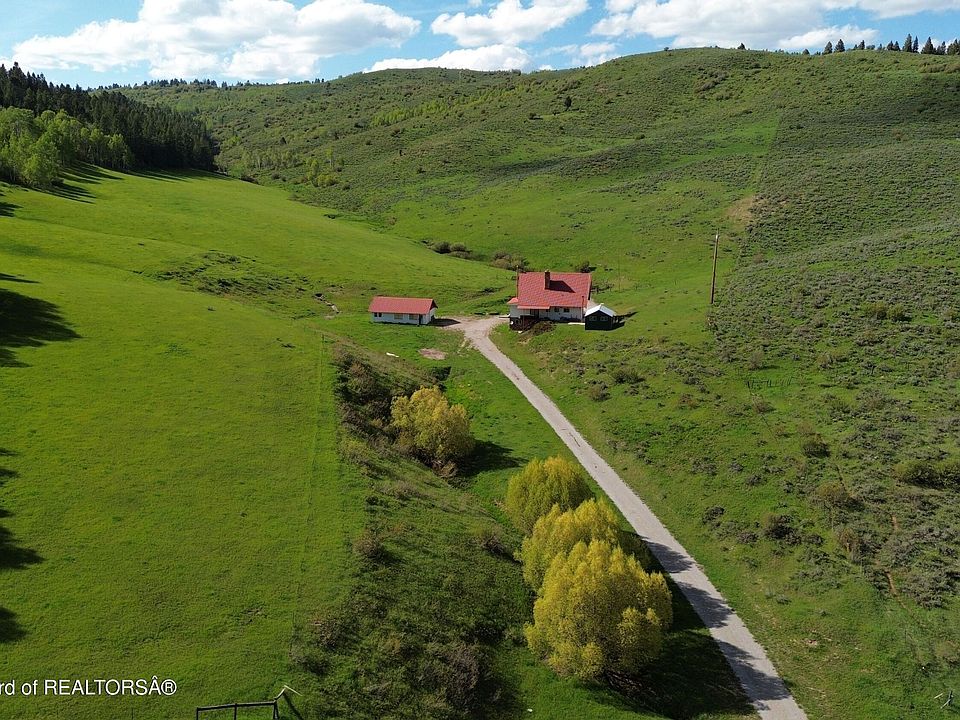 Located in the Caribou National Forest and bordering Highway Idaho 34 this beautiful 65.40 acre tract is 55 miles SW of Jackson, Wyoming. Hunting for both Elk and Deer are literally out the back door of the dwelling. There are two garages on the property and a small stream dissecting the acreage. An outstanding accessible elevated building site overlooks the Lower Star Valley area. Fiber optic service is scheduled in 2026