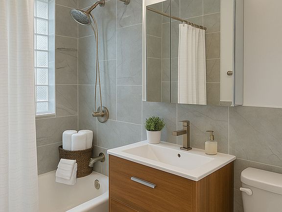 Welcome home to this newly renovated one bedroom apartment! Perfectly located in Woodlawn, this stylish apartment combines modern finishes with plenty of natural light and inviting living spaces. Step inside to find gleaming hardwood floors, a spacious living room with ceiling fan, and a bright sunroom/dining area surrounded by large windows. The modern kitchen features light wood cabinetry, black stone countertops, a subway tile backsplash, and a full black appliance package including stove, refrigerator, and microwave. The bathroom has been beautifully updated with floor-to-ceiling tile, a rainfall shower head, and a sleek vanity with storage. Located just minutes from the University of Chicago, Jackson Park, and the upcoming Obama Presidential Center, you'll enjoy convenient access to public transit, shopping, and dining.