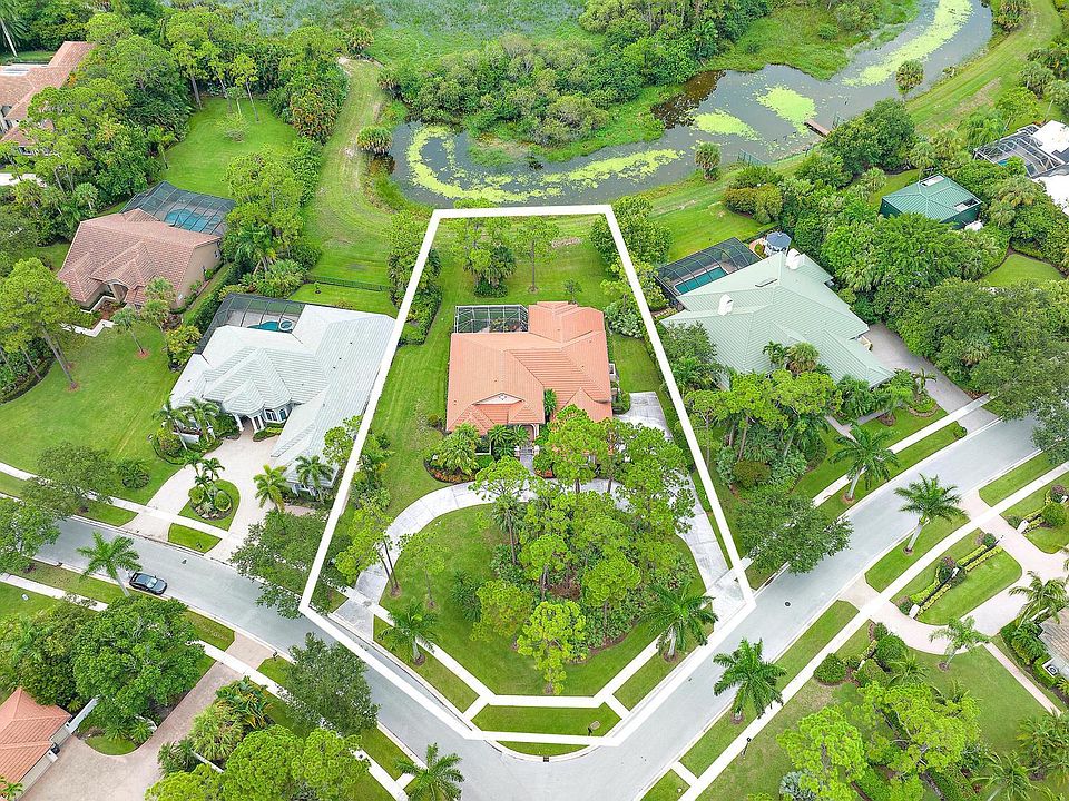 Magnificent, .63-ACRE, pie-shaped, corner lot overlooking pristine nature preserve and offering incomparable PRIVACY within a world-class country club setting. Impressive from the street, this Ruttenberg-built estate boasts a 200-foot circular driveway--quite possibly the largest in all of Ibis! NEW ROOF (2023) and Accordian Hurricane shutters render this property ready for immediate occupancy, or perfect for the buyer who wants to inherit useful, major upgrades on one of the largest lots in the community, and add their own style by modifying the interior. 80 FEET OF WATER FRONTAGE and a prime SOUTH-EAST exposure in the rear of this home make this 160ft x 240ft lot ideal for someone who values privacy, natural light, and incredible preserve/water views. With great bones and featuring volume ceilings, fabulous architectural details, this one-owner, never-been-listed-before home expends graciously to nature. The front entrance features a unique "outdoor foyer" and the THREE-CAR GARAGE is located on the side of the property. The 75-gallon water heater was replaced in 2016 and the HVAC's are from 2012. The family room features two unique, aquarium-like, butt glass corners that visually expand the interior to nature, showcasing the natural beauty of pristine nature preserve. The screened enclosure was recently re-screened and the garden located within it has access to water and electric. Granite countertops added, and Moen faucets featured throughout, including a new, 2023 kitchen faucet. The Club at Ibis is an award-winning community that boasts a 90,000 sq. ft. clubhouse, three 18-hole Nicklaus-family Championship golf courses, five restaurants, a world-class fitness complex and spa, and incredible tennis and pickleball facility.
