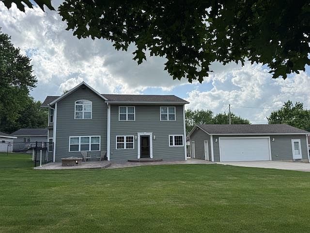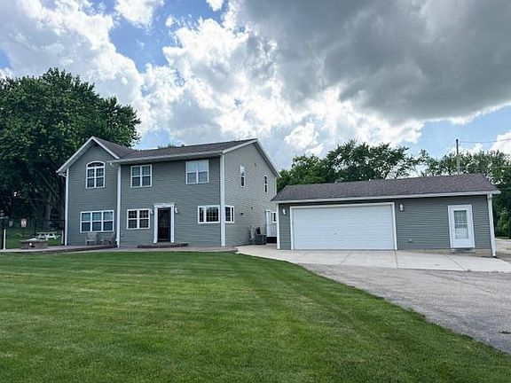 Updated Classic Farmhouse on .82 acres with heated detached garage Welcome to this beautifully updated farmhouse on a spacious .82-acre lot, offering modern amenities with timeless charm. The property features a large 36x24 heated detached garage perfect for hobbies, storage, or a workshop. Recent updates include newer roof, siding, furnace, A/C, water softener, and a stunning stamped concrete patio, ensuring peace of mind and low-maintenance living. Step inside to find a spacious kitchen with rich hardwood floors, stainless steel appliances, and custom cabinetry, ideal for both everyday living and entertaining. The home offers three full bathrooms, including a private prime suite with a large walk-in closet and jetted tub. A generous mudroom with washer & dryer makes daily routines easy.