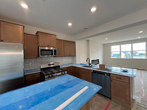Welcome to Brooks Plan this stunning 3-bedroom, 2 and a half bathroom home located at 6639 Wildflower Way. Boasting a total of 1,921 square feet, this 3-story new-build townhome offers a blend of modern elegance and cozy comfort. The open floorplan design seamlessly connects the kitchen to the living and dining areas, creating a warm and welcoming atmosphere throughout the home. The spacious kitchen comes complete with stainless steel appliances, sleek countertops, and a spacious island ideal for entertaining guests. The adjacent family room features large windows and an electric fireplace to give a bright and airy ambiance. Upstairs, the owner's bedroom with en-suite bathroom provides you with a dual-sink vanity and a walk-in closet. 2 additional bedrooms offer flexibility for a growing family, home office, or guest quarters; a full bathroom and a laundry closet round out this floor. Last but certainly not least is the lower-level rec room with 2-car garage access!