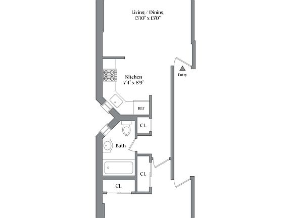 The large bedroom features two northwest-facing windows that provide a great view of Lower Manhattan and the Brooklyn-Queens Expressway. There are also two full-size closets with interior lights, and the bedroom has a door to the building hallway, which makes move-in a breeze.