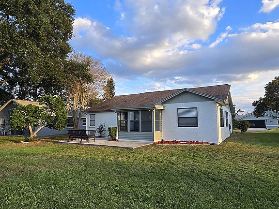 Welcome to this peaceful and beautifully maintained 3-bedroom, 2-bath home located in the highly desirable Sandpiper Golf & Country Club 55+ Community. This move-in-ready home offers a bright, open layout with updated touches throughout — including freshly painted kitchen cabinets, laminate flooring, newer HVAC, added insulation, and a relaxing screened lanai perfect for enjoying your morning coffee and watching the sunrise.