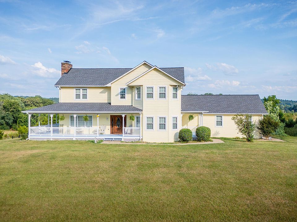 Victorian Style Farmhouse with large wrap around porch overlooking a private 2.56-acre lot. The kitchen includes all appliances with Jenn-Aire range. There is an abundance of cabinets and counter space. The formal dining area has hardwood flooring and large bay window. The comfortable living area has hardwood flooring, oak crown molding, a beautiful fireplace and loads of natural light. This home features three bedrooms, with three baths. Just outside the primary bedroom is a nice sitting area for relaxing or reading. Inside the recently carpeted main bedroom you will find a very large bath with jetted tub and double vanity. Flooring includes hardwood floors and a combination of ceramic tile and carpet. The two gas log fireplaces (not currently in service) are located in Living Room and Basement area. If you like to be outdoors this is the perfect home for you. Enjoy the sun in the 18x36 inground pool, with slide and diving board. The outside cooking area with granite countertop. There is a combination cooking/grilling/smoker. The cooking area is covered by a unique Japanese style Gazebo with hipped roof. If you enjoy sitting around an open fire at night, there is also a firepit. Just off the pool is an inside sitting area with double glass door to view out over the pool and surrounding hills. The full finished basement has potential to be an in-law suite, recreation room, library or work out area. There is a large bookshelf, pool table and exercise equipment that will convey if buyers so choose. The second fireplace is located here. The basement is plumbed for a 4th bath. There is an attached oversized garage with recent updates that include some new drywall, addition of shelving and new attic access. The home is surrounded by open fields and provides plenty of privacy. Please see the Supplement Sheet to review all the features and recent updates. Location is convenient to everything Tri Cities. Sold As I Property Highlights and Improvements (as provided by owner)