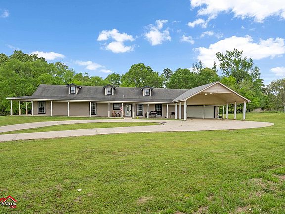 This 5-bedroom, 3.5-bathroom home situated on +/-4.71 acres with a peaceful rural setting. Located within Carthage ISD. Over 4,000 square feet featuring a vast amount of space, including 2 living areas, a formal dining room, multiple bonus rooms that could be made into a spacious office or extra bedrooms, if desired. The front porch view is something that pictures just cannot convey. New roof installed June 2023. This property is supplied water from your very own water well. Spend your Texas summers in or around the in-ground chlorine swimming pool with a new liner, Polaris and Polaris pump, sand pool pump, all replaced within last 2 years. Call today to make this property your very own!