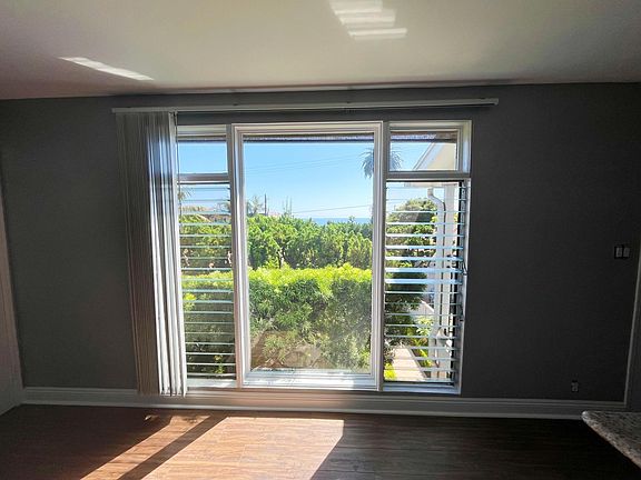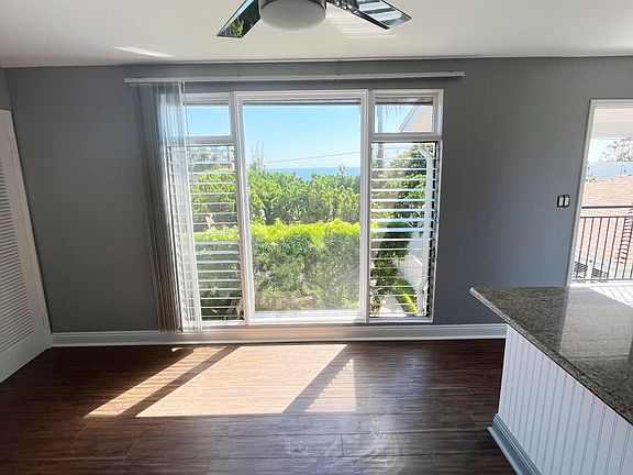 HUGE 400+ SQ FT DECK WITH OCEAN VIEWS!! Come see this amazing one-bedroom apartment featuring ocean views from the floor to ceiling windows in the living room, plenty of natural light and a massive private deck where you can entertain and enjoy outdoor living at its finest! Located in the well-maintained charming El Mirador apartment complex with an inviting courtyard adorned by beautiful lush landscaping all around and within walking distance of the village, grocery stores, and the beach! This charming one-bedroom unit also features hardwood flooring, ceiling fans, fresh paint, a newly renovated kitchen, granite counters, refrigerator and an upgraded bathroom with stall shower. A private one car garage is available for an additional $200 per month. TWO WEEKS FREE!! Utilities are a small fee of $25 per month per person for water, sewer, and trash. Electric and gas are not included.