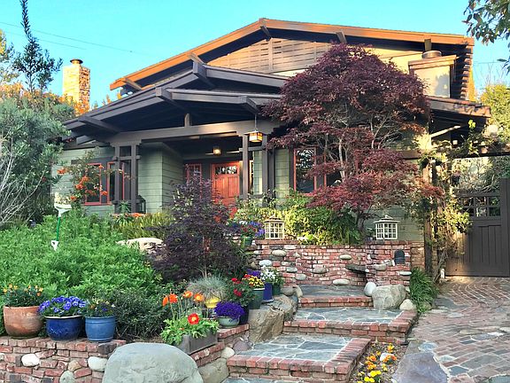 Four-bedroom, 3-bath Craftsman home with fifth bedroom and fourth bath over a detached garage. Total living space is 2872 square feet. Twelve-minute walk to downtown stores & shops; 15-minute walk to Santa Monica Mountains recreation area; 15-minute bike ride to beach & bike path. Upstairs has a large master suite with balcony and a child’s bedroom suite with loft. Downstairs has 2 bedrooms, a bath, living room with fireplace, dining/sun room, breakfast room and kitchen, all with many craftsman features.