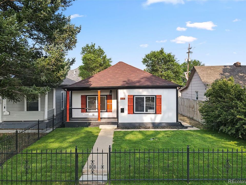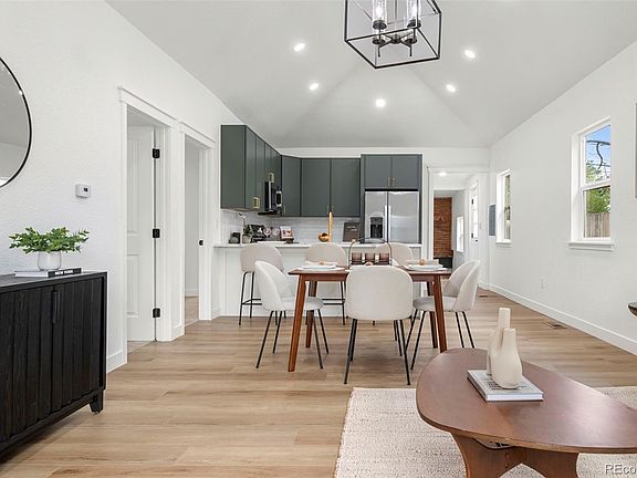 The heart of the home is the stunning kitchen, boasting contemporary olive green and double-toned cabinets, complemented by sleek quartz countertops. The home also features new flooring, new electrical panel, new flat roof, new carpet, and fresh interior and exterior paint, ensuring a modern and inviting atmosphere. Outside, you'll find a one-car detached garage, providing convenience and additional storage. Ideally situated, this home is very close to downtown Denver and the Empower Field at Mile High, offering easy access to city amenities, restaurants, light rails and entertainment. Don't miss the opportunity to make this gorgeous home your own!