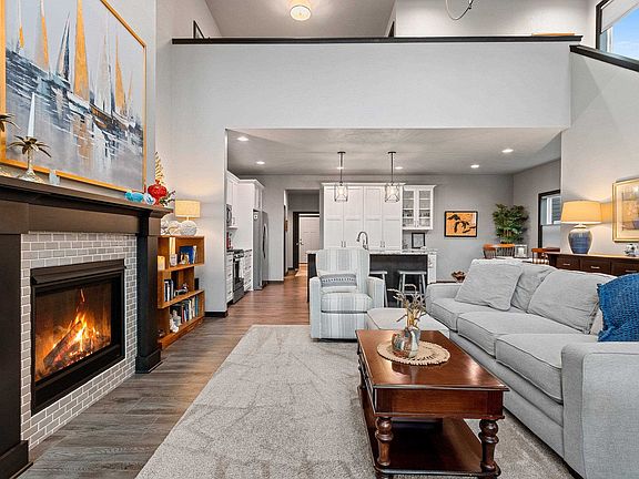 Location, Location! Near Howard Commons, YMCA & Meadowbrook Park is this 2-story offering a lifestyle of ease & convenience! A zero-entry design flows seamlessly with an upper loft & egress window in the lower level preparing you for future expansion. Soaring 2-story great room with a gas fireplace adds a wow factor that carries into the dream kitchen with crisp white cabinets, pantry, center island, dry bar, granite counters & stainless appliances. Mn floor bedroom, upper loft & primary suite w/walk-in closet & tile shower are sure to please. Tasteful decor, upgraded lighting, 1st floor laundry & an insulated, finished garage complete the package. Enjoy HOA perks- lawn care & snow removal included! Walkable to parks, library, pavilion & more—perfect for low maintenance living.