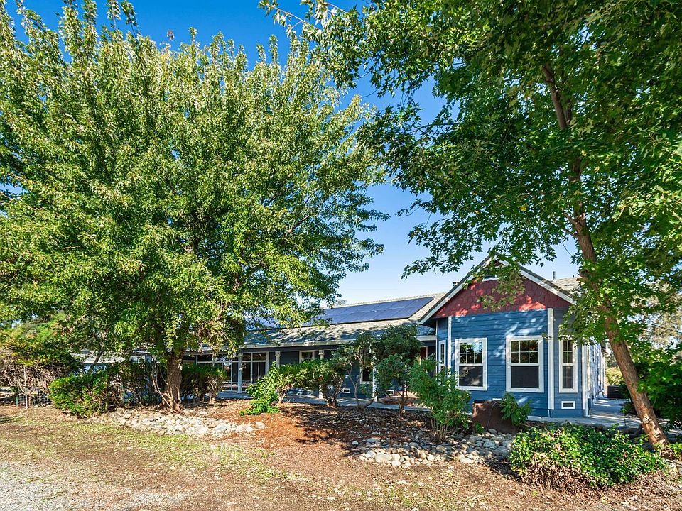 The Timber. This property, once a renowned rodeo ground, is now an equestrian's paradise. It features a one-mile groomed gallop track winding through majestic oak trees, a spacious arena, eight pipe paddocks, a tie rack, three irrigated upper pipe pastures, a stud stall, and a large pipe turnout pen with elevation changes ideal for training young horses. Additionally, there's a shaded farrier area, tie-outs, and a large shop with hay storage and a loft. The shop has new lighting and is wired for commercial welding both indoors and outdoors. The property also includes two RV plug-in locations and well-planned, producing fruit trees that provide fruit in all seasons of the year. The large ranch-style home offers four bedrooms, two full baths, one half bath, and a great room perfect for large gatherings, overlooking a Viking pool for summer enjoyment. A dedicated exercise room and low-maintenance tile flooring throughout complete the home. An owned solar system powers the entire home and heats the pool, ensuring energy efficiency and comfort. Complete plans for a second home are available as well. This is truly a rare opportunity to acquire a distinctive property that combines rich history with exceptional equestrian facilities and comfortable ranch living. Includes APN 022-150-087