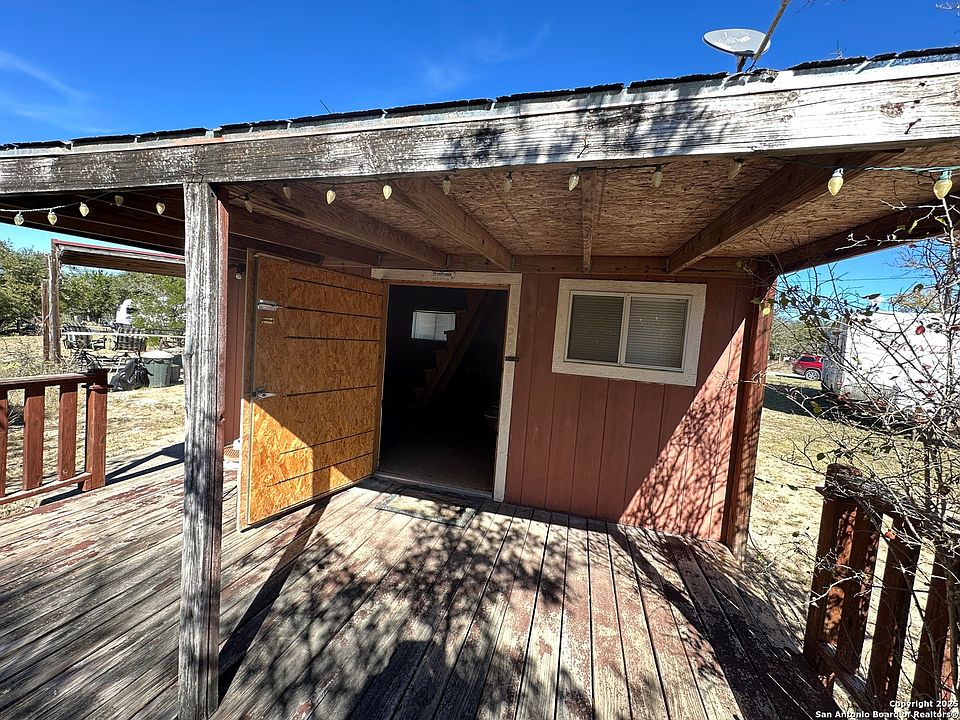 Discover a charming Hill Country hideaway just minutes from downtown Bandera! Two unique lots being sold together. RV that is on the property is being sold seperatly (not part of the land sale) Lot 1 - 0.424-acre parcel with a livable shed (water & power connected). Front porch faces the valley that ends at the Medina River. Property includes two BBQ pits, picnic table areas, and RV hookups. Lot 2 - 0.429-acre parcel, cleared and private with a picnic table area. Buyer to verify square footage, lot size, zoning and any restrictions. Schedule showings through ShowingTime