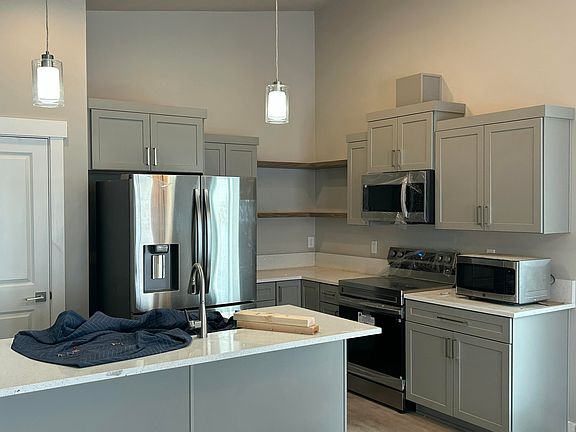 Meadows at Crooked Creek Phase 2--18 detached and 4 attached new homes conveniently located in the heart of Medford, with occupancy starting in spring 2024. This beautiful mid-century modern style detached single-story home by Rispoli Design & Build features 1,440 sq ft (per builder), 3 bedrooms and 2 full baths, and 100% Hardie cement non-combustible siding & trim exterior. Features include vaulted and/or 9-ft ceilings, quartz countertops, heat pump water heater, plank flooring, porcelain tile, ductless mini-split HVAC, kitchen island, s/s appliances, Diamond Mantra cabinets with soft-close doors & hidden hinges, fully finished garage with wi-fi opener, vinyl fencing, professional landscaping, Energy Trust certification, and much more! Hunter Fiber high-speed internet available. Ready for immediate occupancy.
