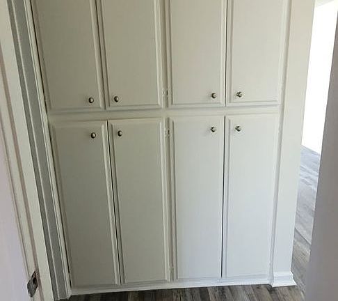 New countertopsLarge windowsStainless steel appliancesSpacious bedroomExtra storage spaceVinyl plank flooringLinen cabinet in hallway